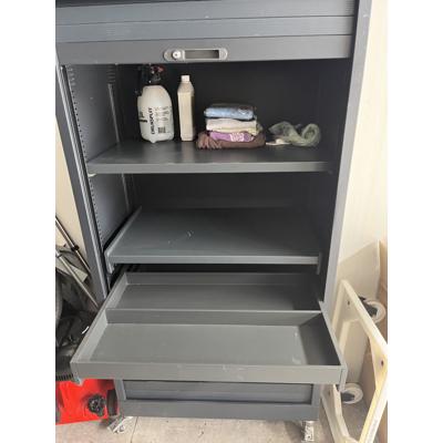 Antraciet roldeur kast, gebruikerssporen, goed te gebruiken bv voor gereedschap en andere doeleinden